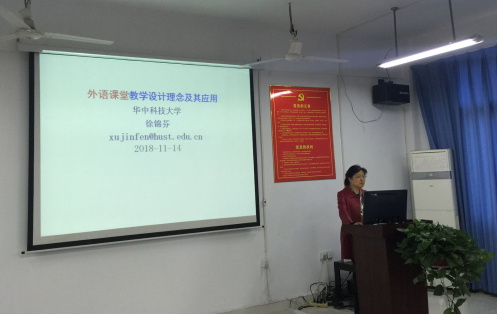 (通讯员 喻侯林 叶妙醒)2018年11月14日下午,应外国语学院邀请,华中科技大学教授、博士生导师徐锦芬莅临外国语学院,为师生们作题为“外语课堂教学设计理念及其应用”的专题讲座。讲座由外国语学院院长汪燕华教授主持,学院部分教师和学生聆听了徐锦芬教授的讲座。