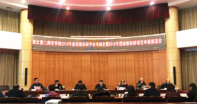 1月8日下午,学校在行政楼一号会议室召开2018年度校级科研平台考核会暨2019年国家级科研项目申报推进会,校长胡仲军、党委副书记许邦官、柯美录、副校长黄颂出席,教务处、学科办等部门主要负责人、各教学学院院长共同组成专家评审团,各平台主要负责人参加会议。