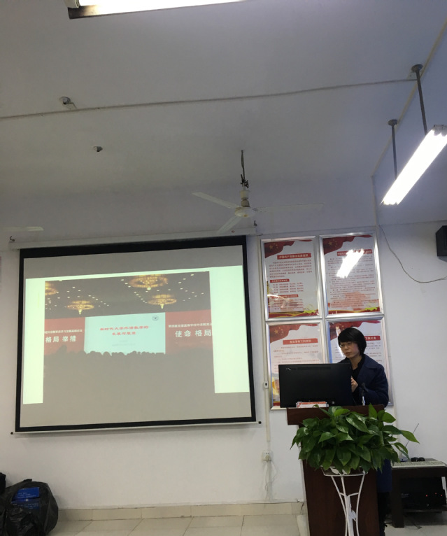 (通讯员:杨露)2019年3月28日下午,外国语学院喻侯林老师为全院教师就她近日参加的“第四届全国高等学校外语教育改革与发展高端论坛”作了重要的精神传达,并发表了感言。