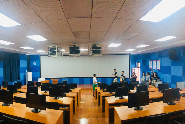 随后,在陈金平副院长的带领下,教师团队参观了图书馆以及实验楼,深入了解了包括影音棚、同传实验室、商务英语情景模拟实训室、翻译实训实验室、跨专业虚拟仿真综合实训基地和运用3D投影技术的物流系统虚拟仿真综合实验室等的运作模式等。