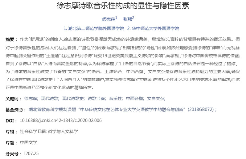 缪惠莲:《江汉学术》——徐志摩诗歌音乐性构成的显性与隐形因素