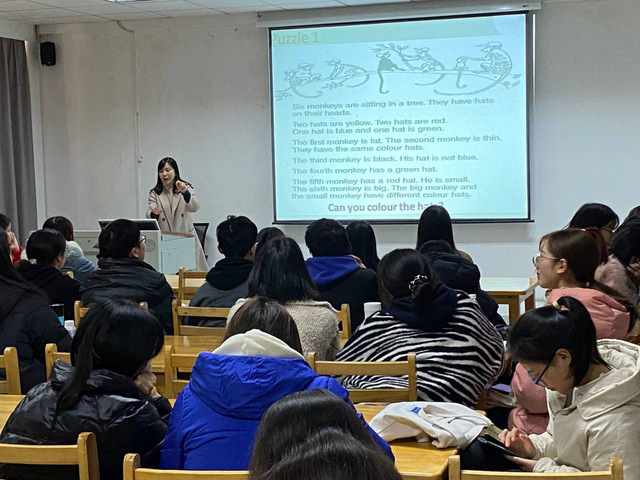 罗老师本次讲座以 HOTS and LOTS为题,采用工作坊的形式,首先以两个英文的puzzles启迪大家的思维,进而介绍了教育心理学家Benjamin Bloom关于认知领域的6个分类。罗老师向在座的同学们问道:你会是一位善于提问的老师吗?教学中如何提问才能培养学生的思维能力呢?你的问题属于skinny questions 还是 fat questions? HOTS and LOTS又是什么呢?随着一个个问题的解决,同学们不仅学到了理论知识,还学到了实用的教学技巧,大家积极参与体验,获益匪浅。