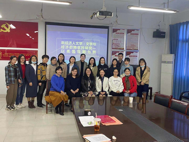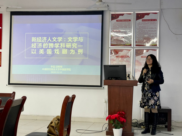 (通讯员:邱辛欣)2020年11月12日下午,中南财经政法大学外国语学院副教授李晶应邀来到外国语学院,以“新经济人文学:文学与经济的跨学科研究—以美国戏剧为例”为题,进行了一场精彩的学术讲座。商务英语系、英语系和大英部全体教师参加了此次讲座。