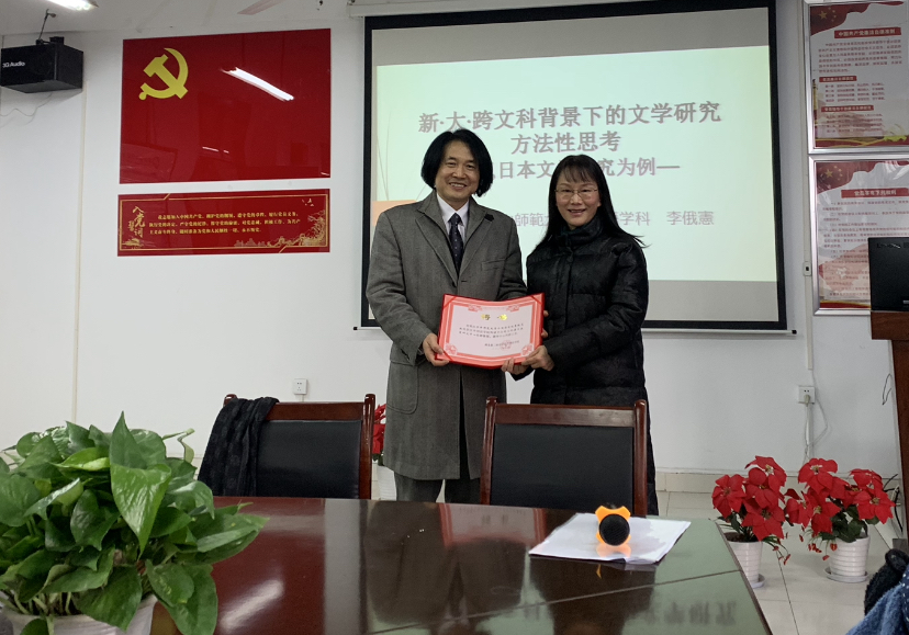 2020年12月17日下午,华中师范大学外国语学院副院长李俄宪教授应邀来到外国语学院,以“新・大・跨文科背景下的文学研究方法性思考——以日本文学研究为例”为主题,为外国语学院全院教师进行了一场精彩的学术讲座。