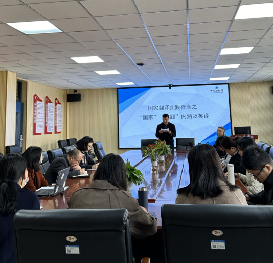 2023年11月24日下午,应外国语学院邀请,中国海洋大学外国语学院任东升教授来我院进行学术讲座与国家级课题申报指导。讲座在外国语学院四楼会议室举行,由外国语学院院长刘晖主持,外国语学院翻译系教师、国家级及省部级课题申报教师、青年教师听取了讲座。